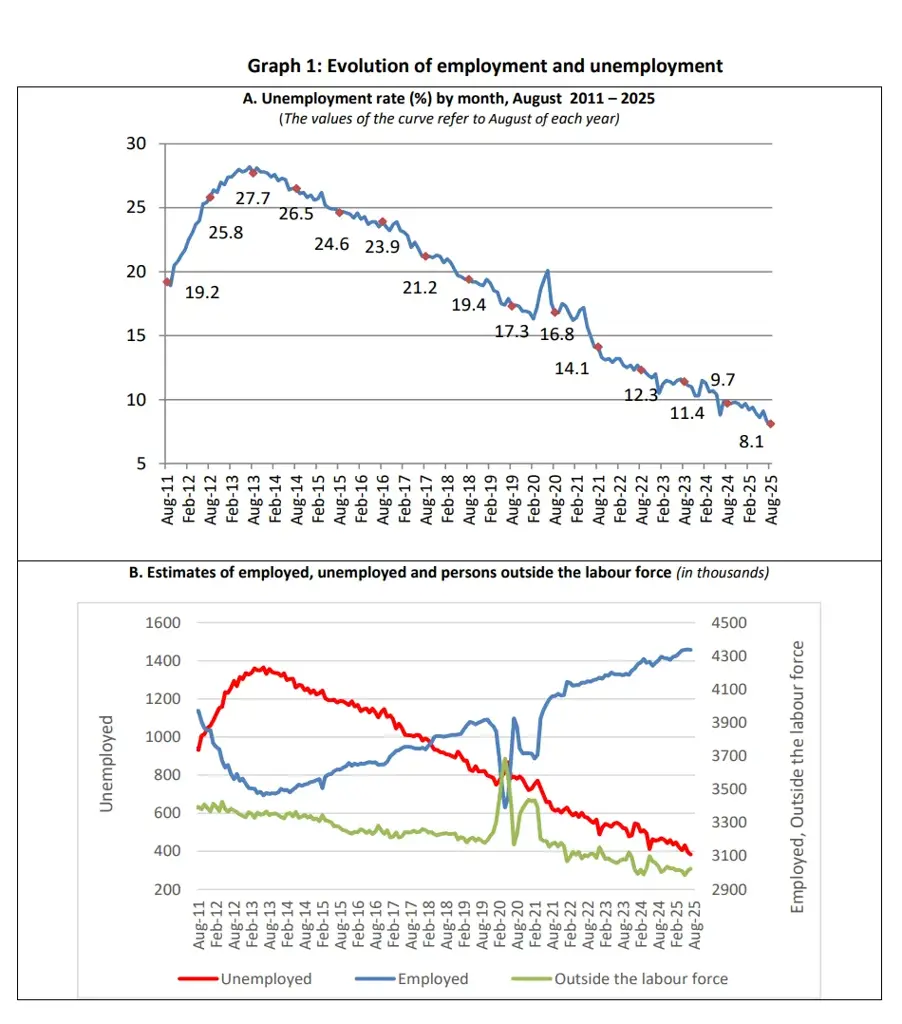 Theo báo cáo mới nhất từ Cơ quan Thống kê Hy Lạp (ELSTAT), tỷ lệ thất nghiệp của nước này trong tháng 8/2025 chỉ còn 9,1%, mức thấp kỷ...